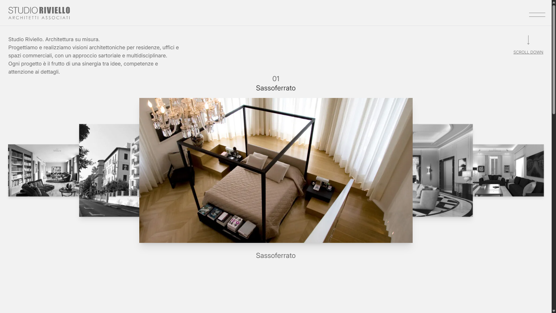 Studio Riviello è uno studio di architetti associati a Roma che lavora su residenziale e commerciale di fascia alta, con progetti che attraversano anche Parigi. Per uno studio che vende progettazione su misura, il sito non è un accessorio commerciale: è esso stesso un progetto. L'obiettivo era costruire un'esperienza digitale in cui il movimento, la sequenza e i transitori tra scene raccontassero l'attenzione al dettaglio che lo studio porta sui suoi cantieri. Abbiamo sviluppato il sito usando GSAP come motore di animazione, progettando transizioni, parallax e micro-interazioni che dessero al portfolio un ritmo cinematografico senza compromettere prestazioni e accessibilità.