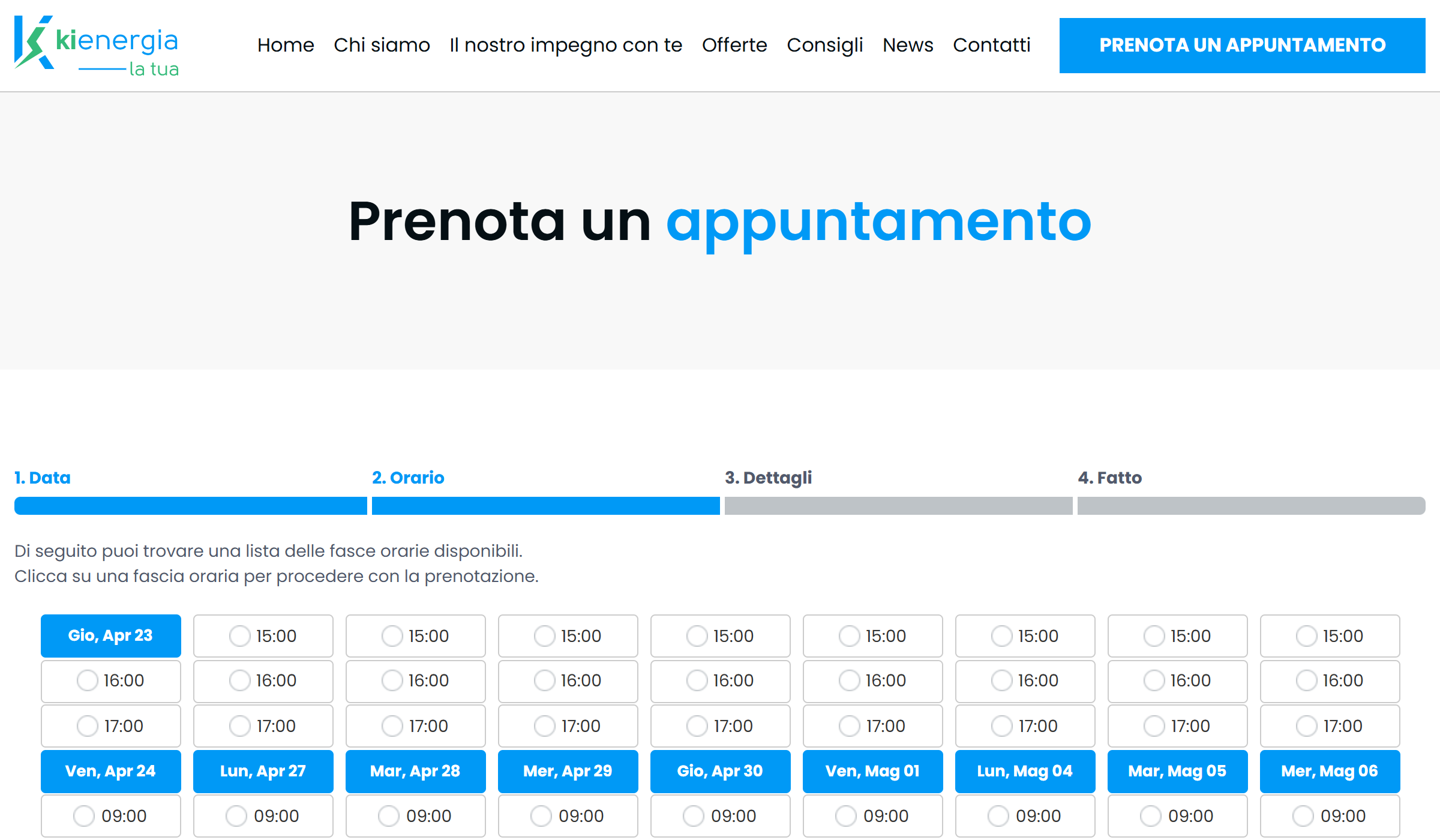 Integrazione di un sistema di prenotazione online direttamente dal sito: il cliente seleziona data e orario e riceve conferma automatica. Il flusso riduce l'attrito tra interesse e contatto, elimina il passaggio telefonico e consegna alla rete commerciale appuntamenti già qualificati e confermati.